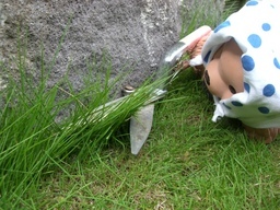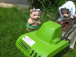 ねっころがったときに、かおに しばふのさきっぽがささって いたいから切ったんだ