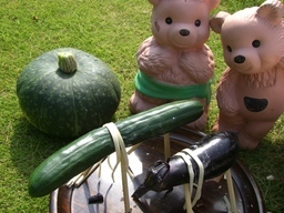はたけから太ったなすくんときゅうちゃんをつれてきた。