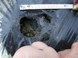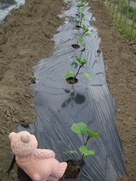 マルチを敷いて、穴をあけて、「みんなガンバってよ