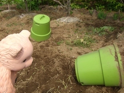 コンポスト(あ、生ごみいれるやつネ)がひっくりかえってる…