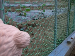 で、結局1m300円の金網を買ってきて、元ビニールハウスの骨組みにくくりつけたんだ。