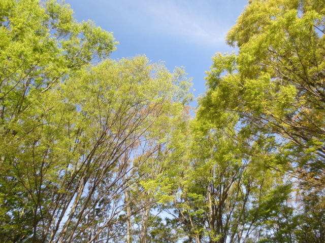 こうして葉っぱだけの木を撮るとゴールデンウィークくらいの季節に見える???