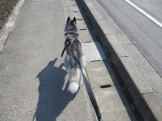 歩道を歩いていると、またまたリードをグイグイ引っ張るジルガッカリ