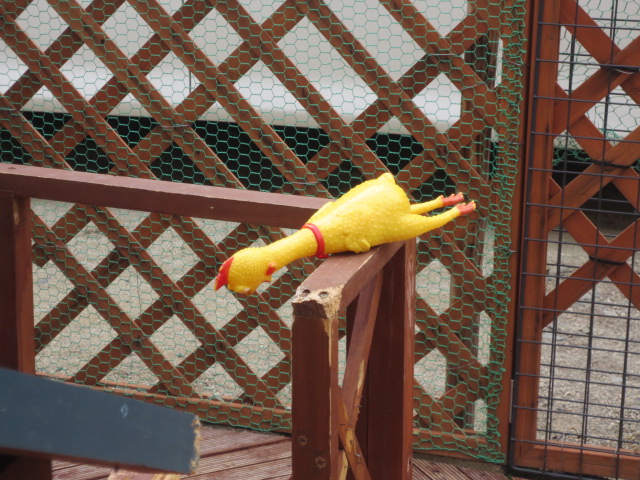 そしてジルは「ガー子」を犬小屋のテラスの柱に乗せてご満悦嬉しい