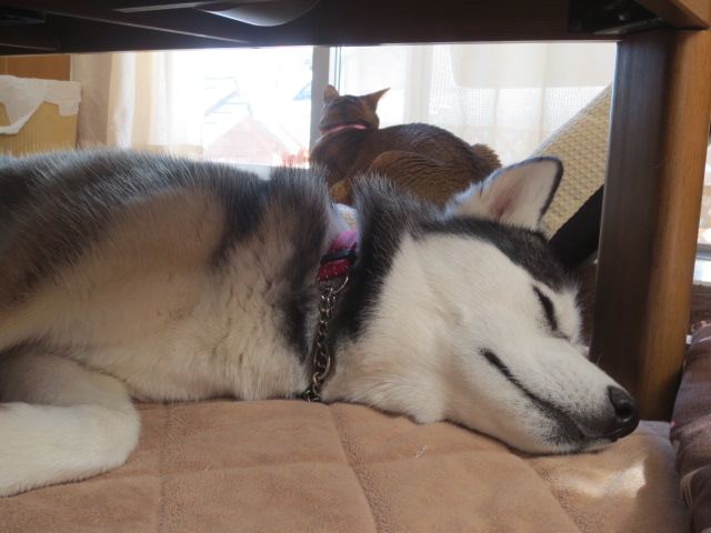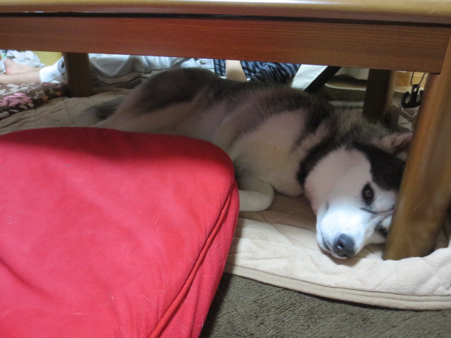 ジルは布団が無いので、テーブルの下に潜り込んでマッタリです。