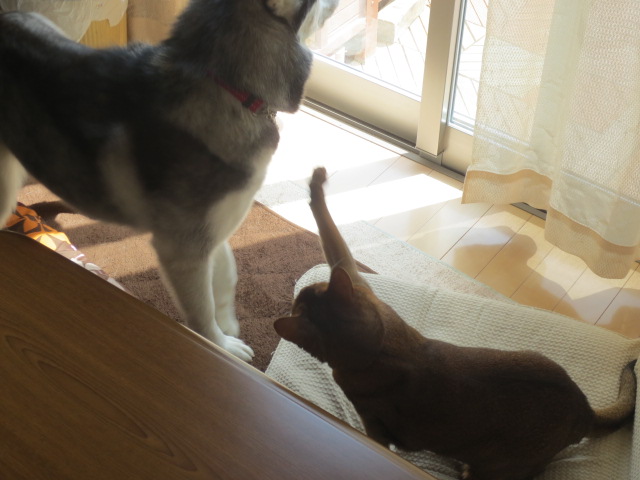 アン君、ジルのお尻を向けて外を眺めてるけど、ちゃんとジルのことも意識して、少し近づいて眠ってましたよ嬉しい