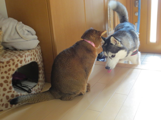 一緒に並んでるのは「リン」と言います。お隣さんが保護したのですが「金魚」や「カメ」がいるので飼えないって事で、私の姉が親代わりになって育てる事になりました。