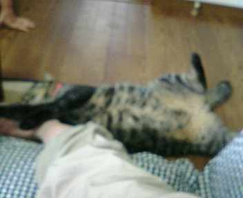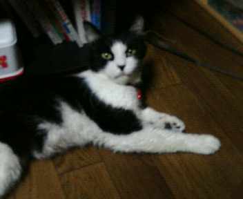ぼけてる写真ですみません。タイちゃんはおデブさん(ピーク時で7.5sです)だったので、いつもこんな格好で寝ていてだらしないおじさんネコかと思いきや、一本筋の通った男らしくまたケンカっ早い勇ましい子でした。また、後からきたネコには優しいお兄ちゃんぶりを発揮する世話好きでもあったんですよ。