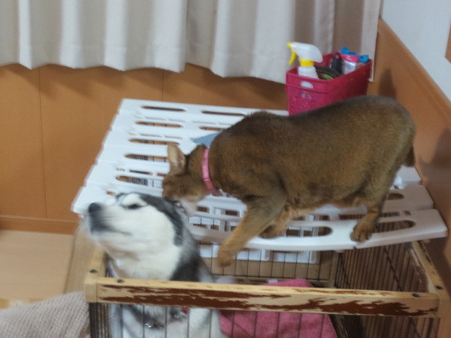 ケージの中だと圧倒的にジルが不利なので、最近ジルはこの遊びを嫌がります