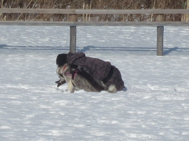 この日から数日間、ジルは雪遊びの夢を見ていたのか、寝ながら足が走ってました。どれだけ楽しかったのか伝わってきたよ。