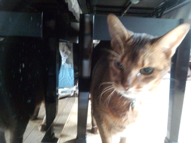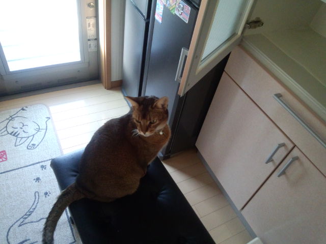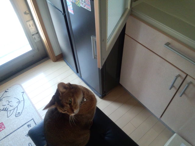 キッチンの棚類をピアノの椅子を脚立代わりに掃除していると、足下に柔らかく生暖かい感触がって犯人は・・・写真右下にチンマリ写っているアン君です。
