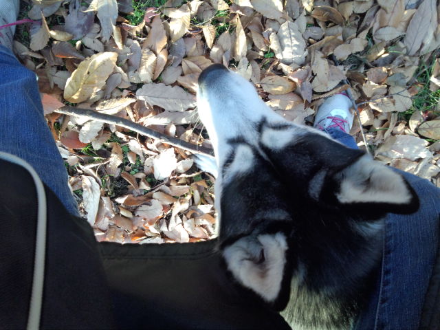 それにしても、そんなに首を捻って筋が痛くならないのかね?見てるママの首が痛いよ・・・。